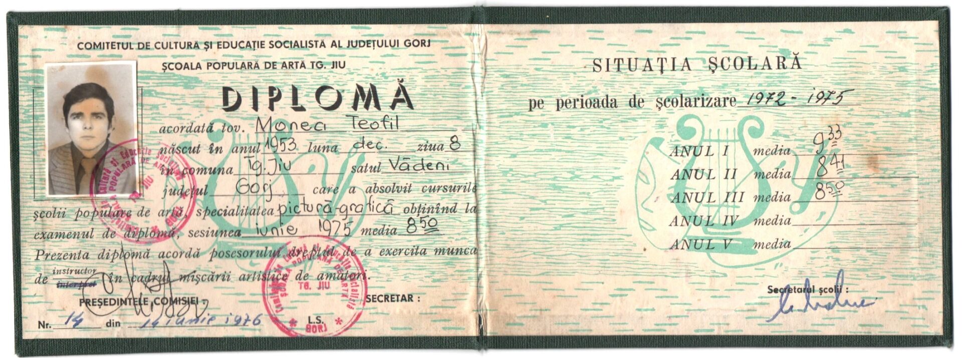 Educația sa artistică a continuat la Școala Populară de Arte din Târgu Jiu, între anii 1972 și 1975, unde a absolvit cu recunoașterea talentului său incontestabil. Această perioadă a pus temeliile unei cariere pline de succes, care avea să îmbogățească lumea artei cu viziuni unice și inovatoare.