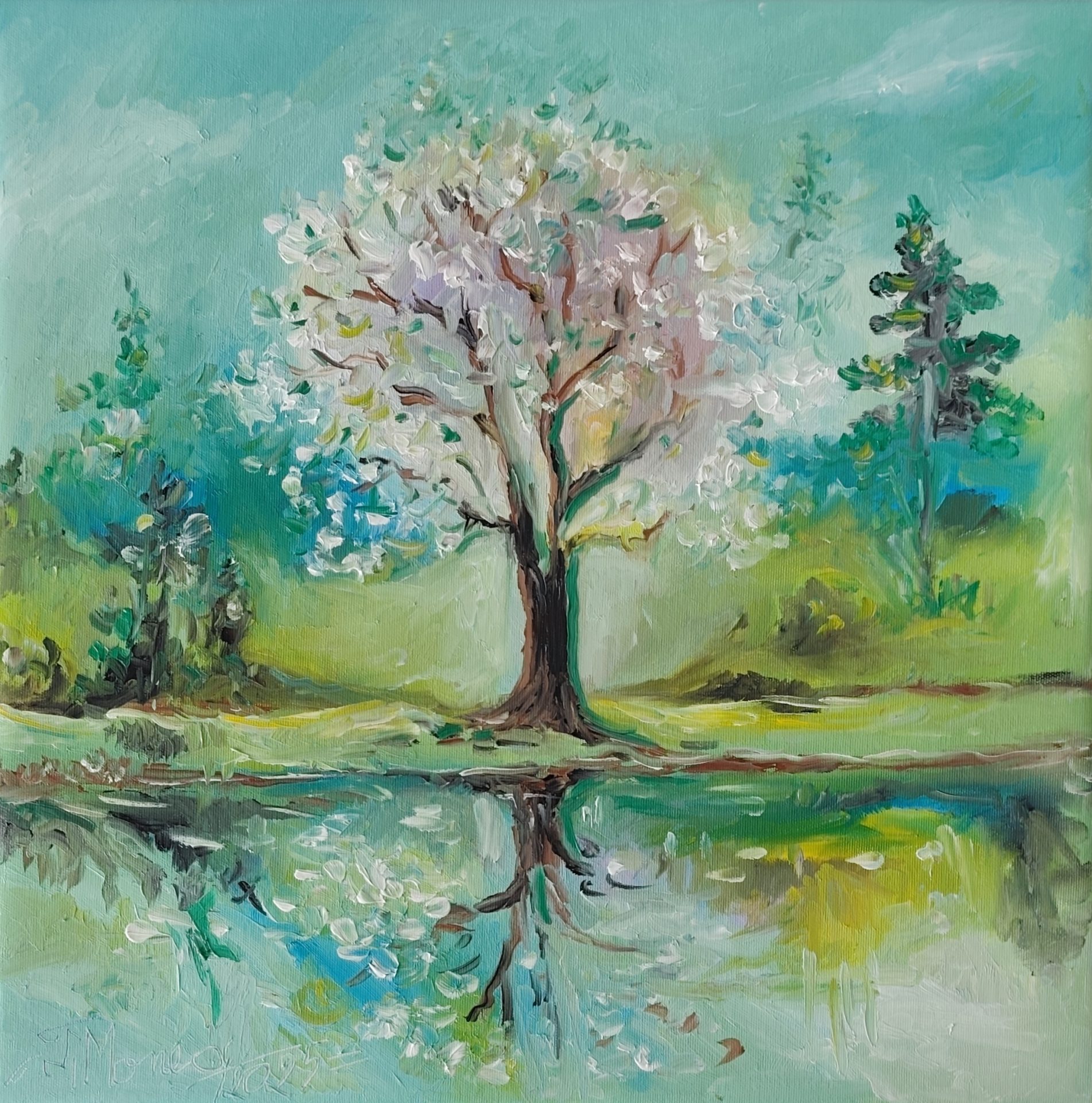 „Liniștea din oglinda apei” – Pictură în ulei pe pânză