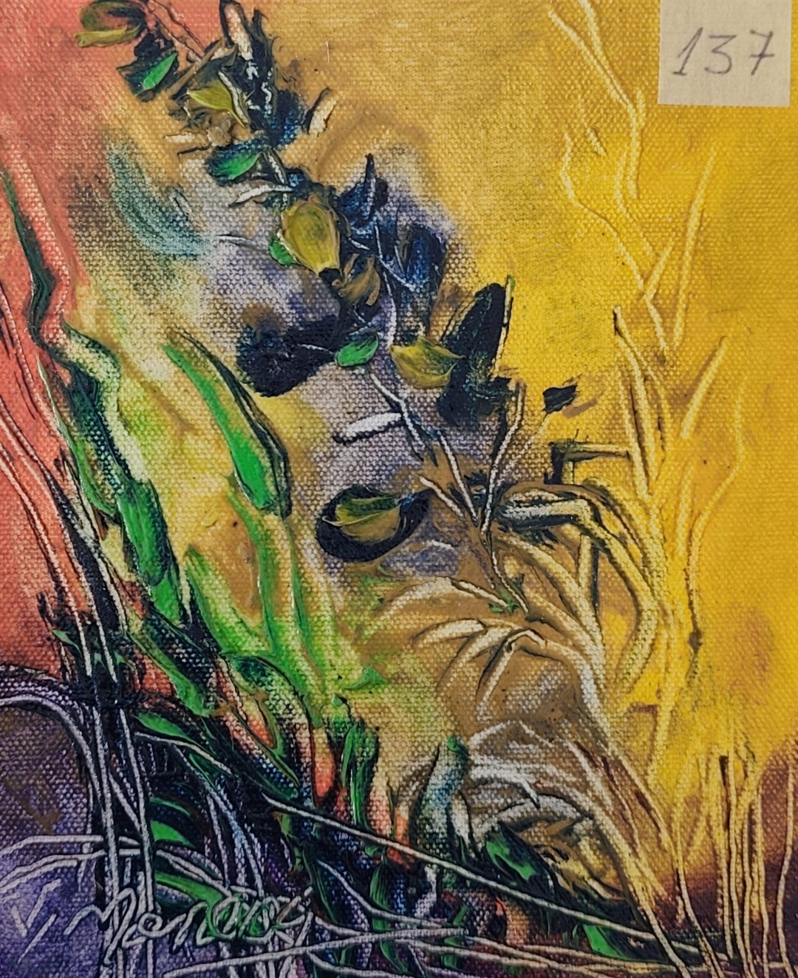Lucrarea este un unicat, realizat manual în vopsele de ulei pe pânză, de artistul plastic Monea Teofil.