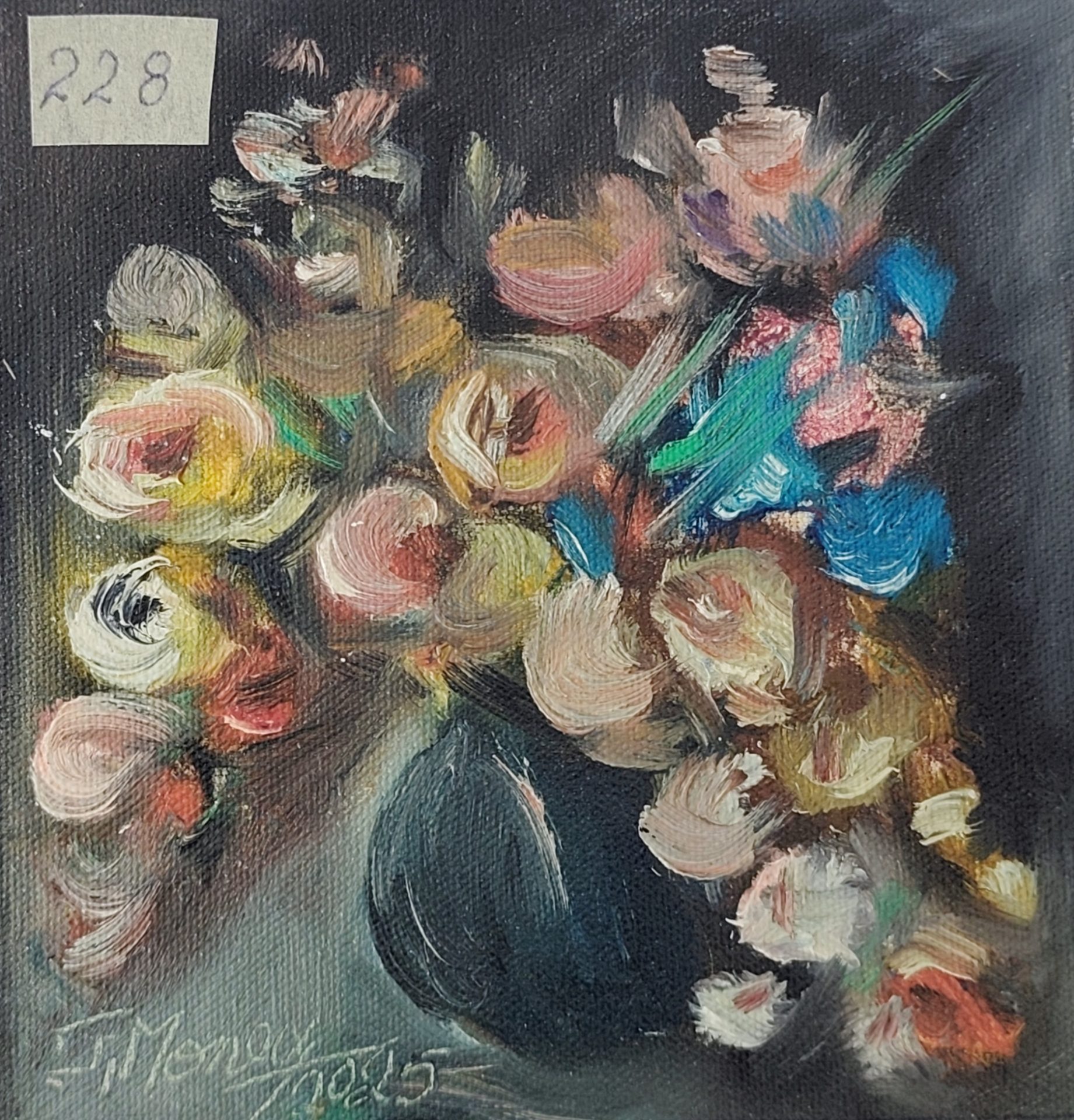 Lucrarea este un unicat, realizat manual în vopsele de ulei pe pânză, de artistul plastic Monea Teofil.