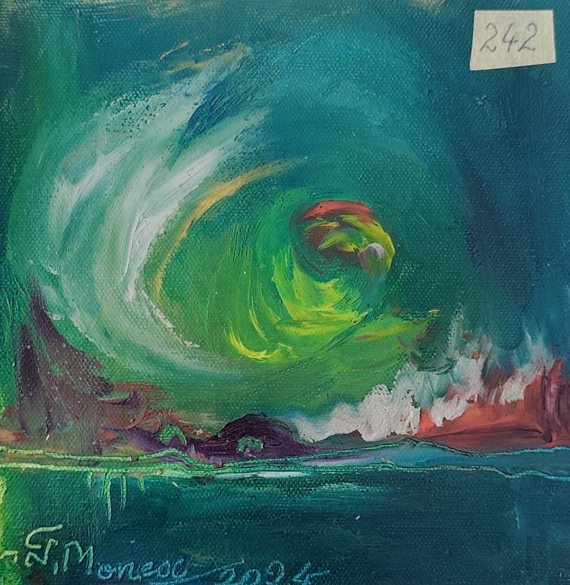 Lucrarea este un unicat, realizat manual în vopsele de ulei pe pânză, de artistul plastic Monea Teofil.