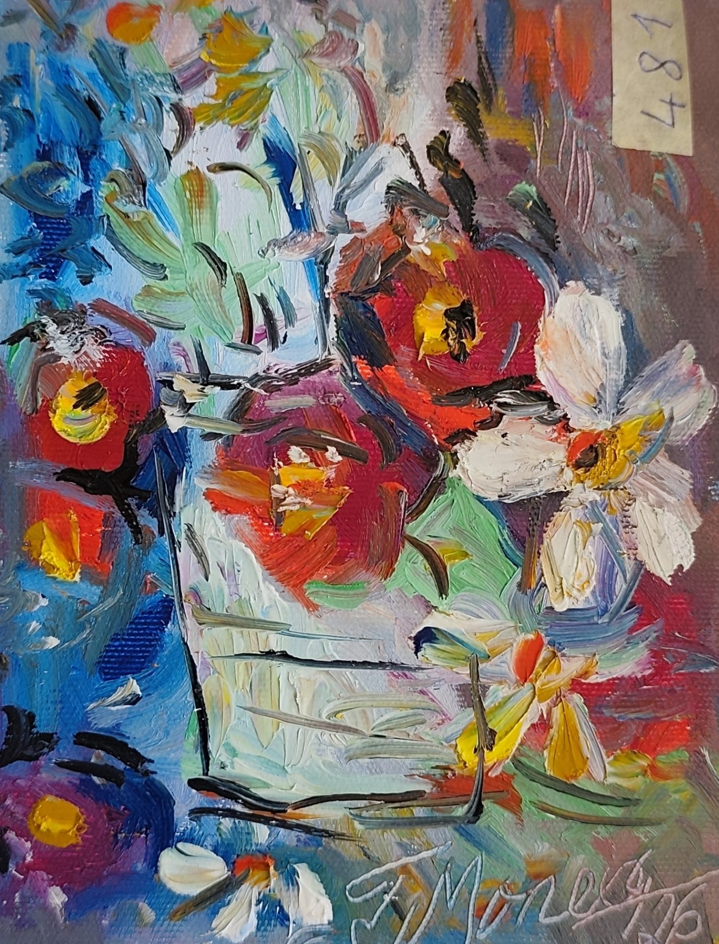 Lucrarea este un unicat, realizat manual în vopsele de ulei pe pânză, de artistul plastic Monea Teofil.